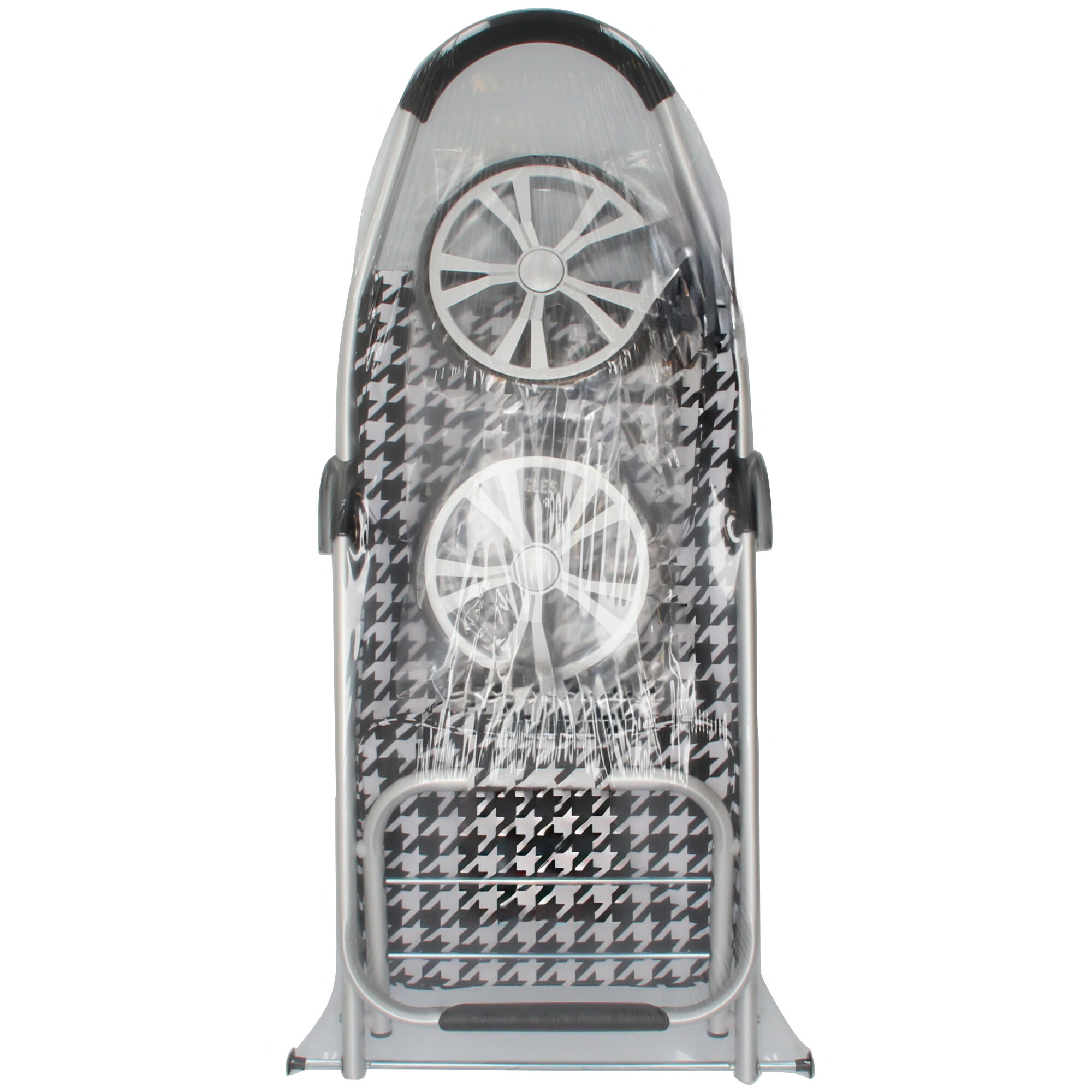 Deze boodschappenkar van het merk Beagles is met 2.1kg zeer licht. Met de grote afneembare wielen pak je makkelijk een stoeprand. Met 2 knoppen op de zijkanten kun je de kar heel makkelijk plat maken, erg handig voor het opbergen van de kar. Deze kar is ook geschikt voor wat langere mensen, het is met 101 cm redelijk hoog. Op de achterkant van de tas vind je een handig ritsvakje. De tas zit op 3 punten goed vast met klittenband aan de kar, de tas is dus afneembaar. De tas is afgesloten met een koord en koordstopper en een overslag.
