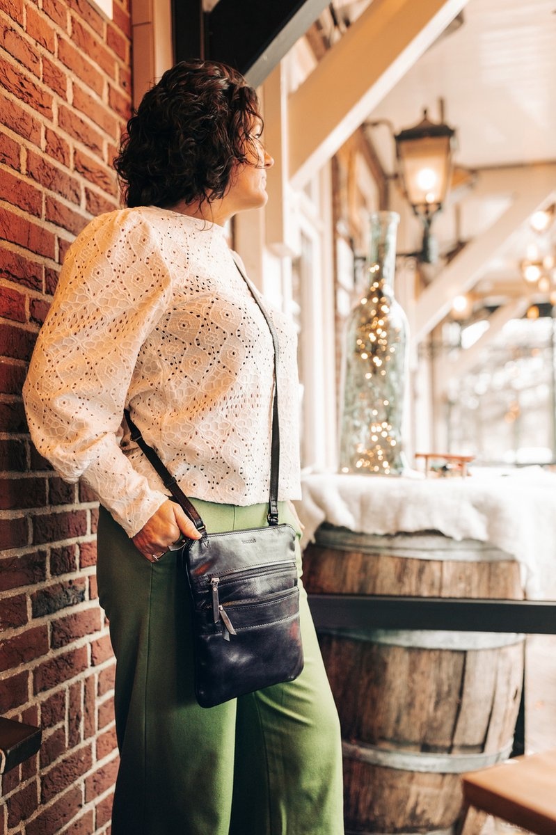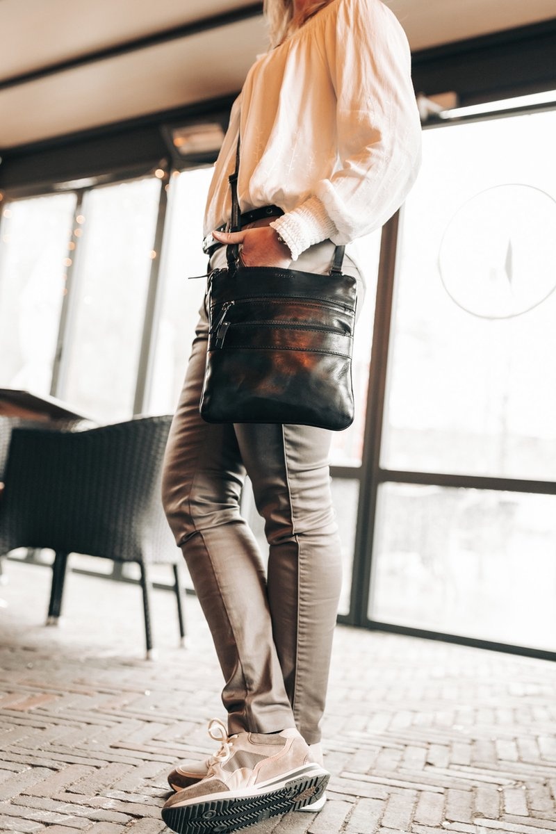 BAG2BAG Zarko zwart — compacte crossbody‑schoudertas van hoogwaardig leer met ritsvak, interne organisatie en verstelbare riem. Stijlvol, praktisch en duurzaam.