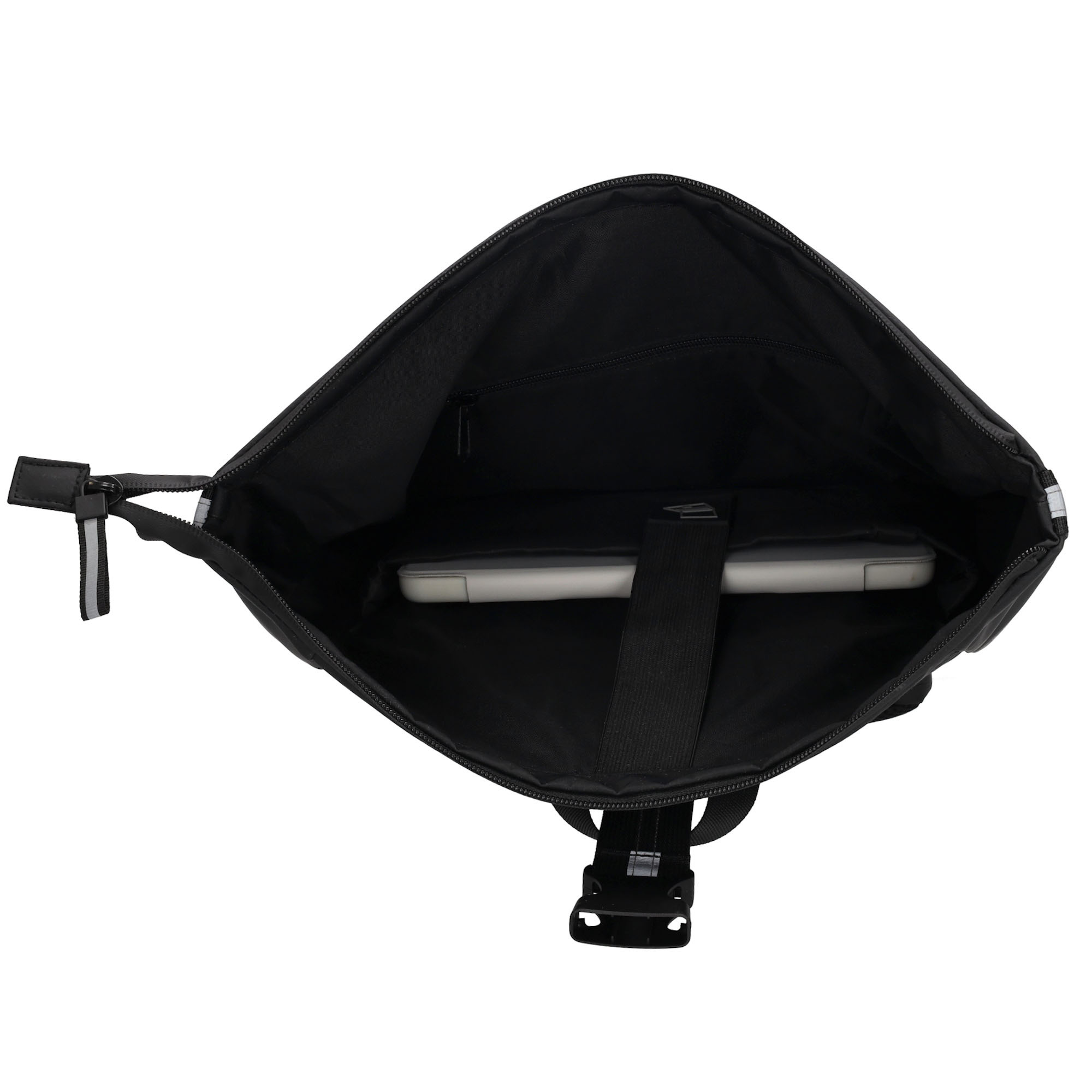 Binnenin vind je een apart laptopvak geschikt voor laptops tot 15,6 inch, een extra ritsvak en een voorvakje voor kleinere essentials. De achterkant is voorzien van goede padding, wat zorgt voor extra draagcomfort tijdens het lopen of fietsen.