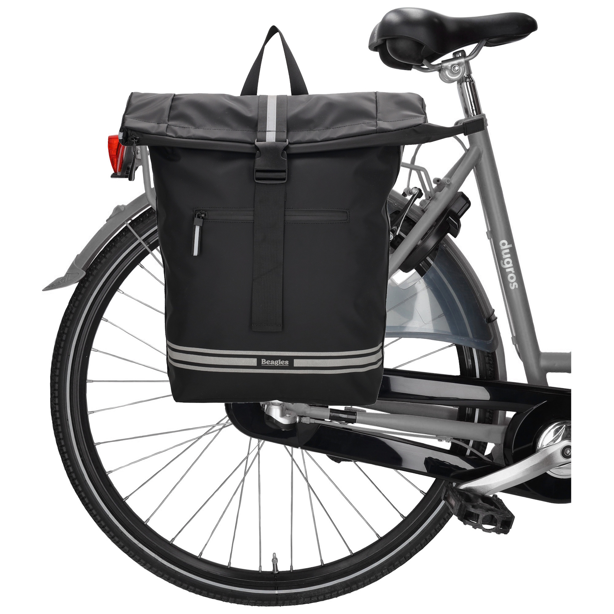 De Beagles Bicycle Originals is de ideale combinatie van een fietstas en een rugzak, perfect voor woon-werkverkeer, school of een dagje uit. Dankzij het slimme ontwerp kun je de tas eenvoudig op je fiets bevestigen en vervolgens comfortabel als rugzak dragen. De rugzakbanden kunnen netjes worden weggewerkt in een ritsvak, zodat de tas strak en georganiseerd blijft wanneer je hem als fietstas gebruikt.