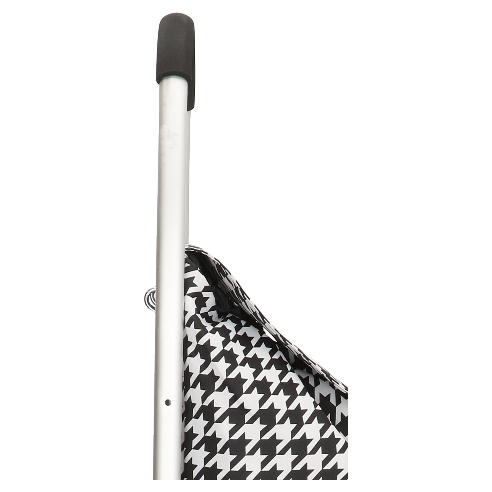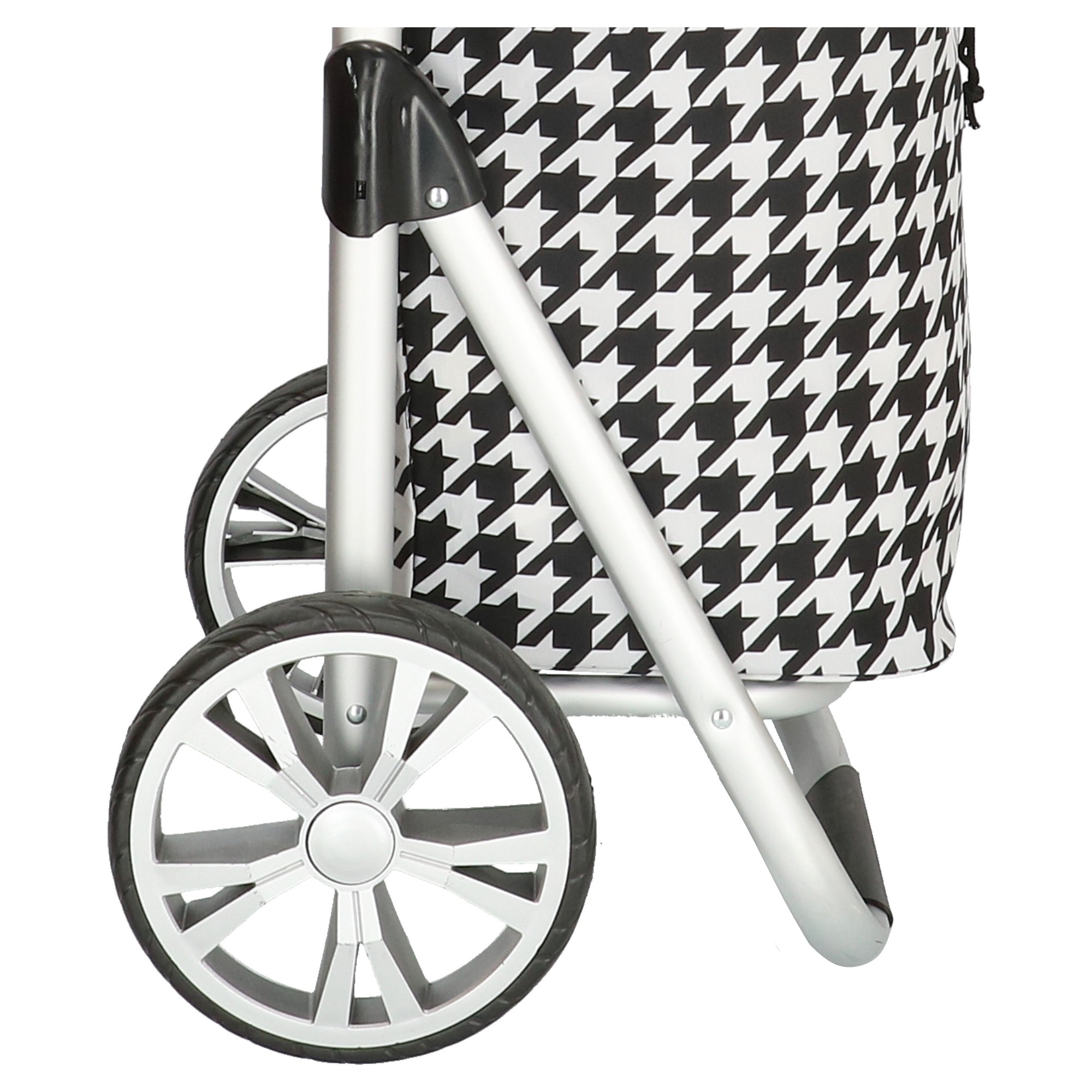 Deze boodschappenkar van het merk Beagles is met 2.1kg zeer licht. Met de grote afneembare wielen pak je makkelijk een stoeprand. Met 2 knoppen op de zijkanten kun je de kar heel makkelijk plat maken, erg handig voor het opbergen van de kar. Deze kar is ook geschikt voor wat langere mensen, het is met 101 cm redelijk hoog. Op de achterkant van de tas vind je een handig ritsvakje. De tas zit op 3 punten goed vast met klittenband aan de kar, de tas is dus afneembaar. De tas is afgesloten met een koord en koordstopper en een overslag.