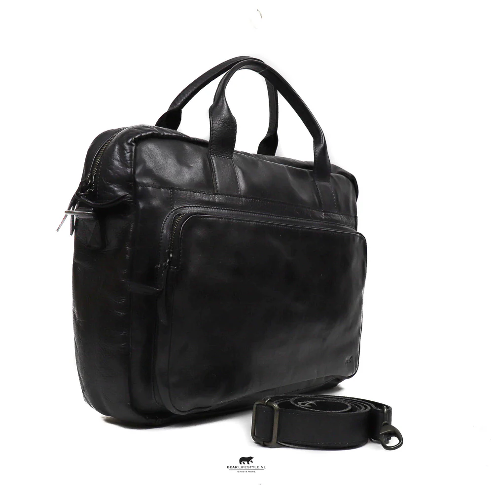 Bear Design Cow Lavato Leren Laptoptas 17 inch zwart