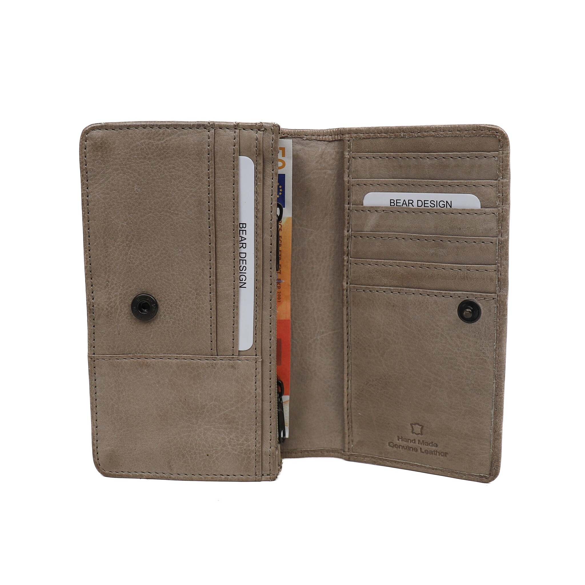 De Bear Design portemonnee Emma is onze meest verkochte portemonnee die al meegaat sinds de start van Bear Design in 1993! Deze ruime portemonnee met overslag bevat genoeg ruimte voor al jouw briefgeld, muntgeld en pasjes. De 'Emma' is gemaakt van het soepele Cow-Lavato leer.