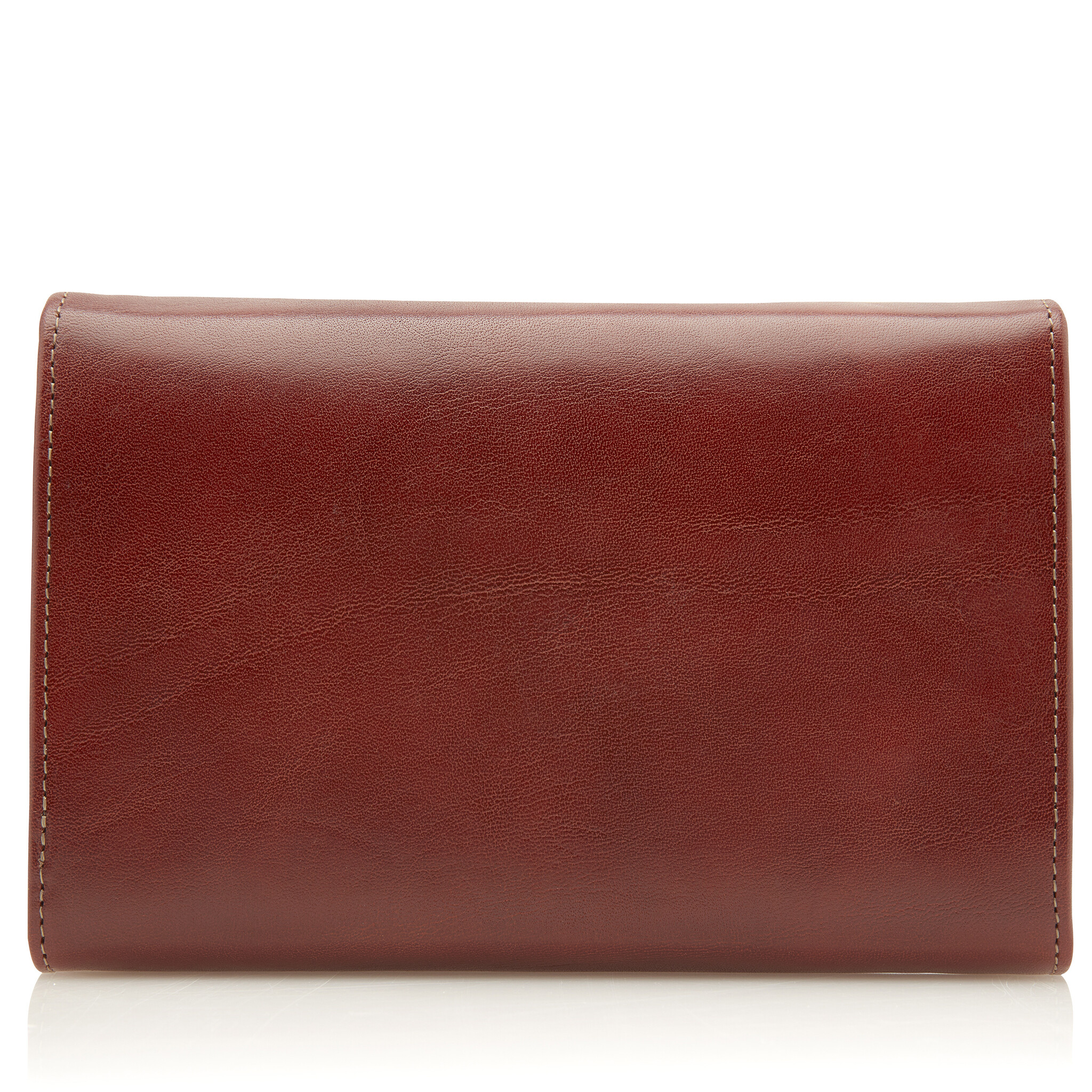 Zeer handzame leren RFID damesportemonnee met een overslagsluiting, een vakje met beugelsluiting en een extra binnenvakje met rits. De leren portemonnee heeft daarnaast 3 ruime steekvakken en 6 creditcardvakjes. De Gaucho collectie is uitgerust met een high-tech folie, dat het uitlezen van de persoonlijke gegevens via de RFID-chip op uw pasjes verhindert. Deze luxe damesportemonnee uit de Gaucho-serie van Castelijn & Beerens is gemaakt van stierenleer behandeld met een transparante verfstof en afgewerkt met het sierlijke C&B-logo in een leren ovaaltje.
