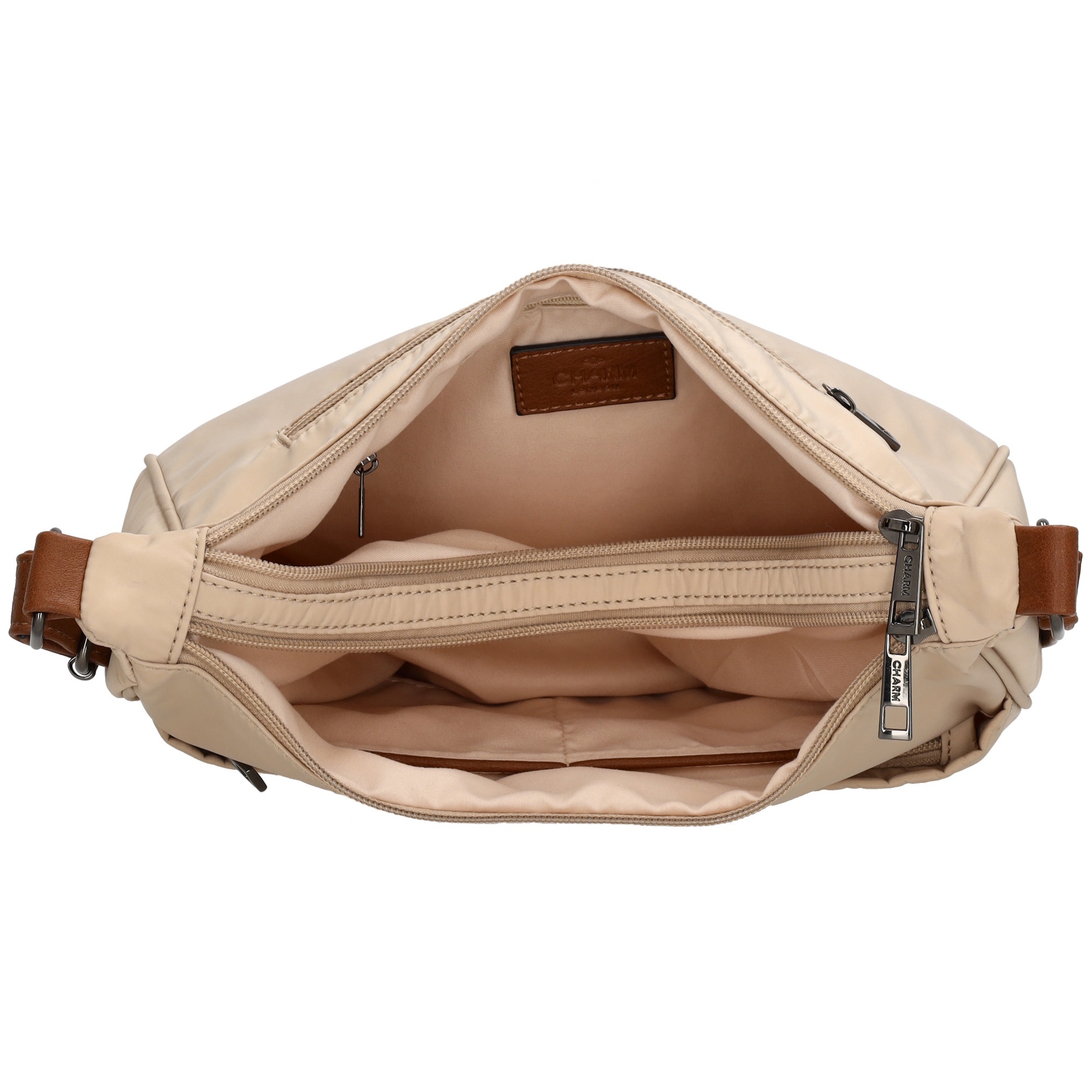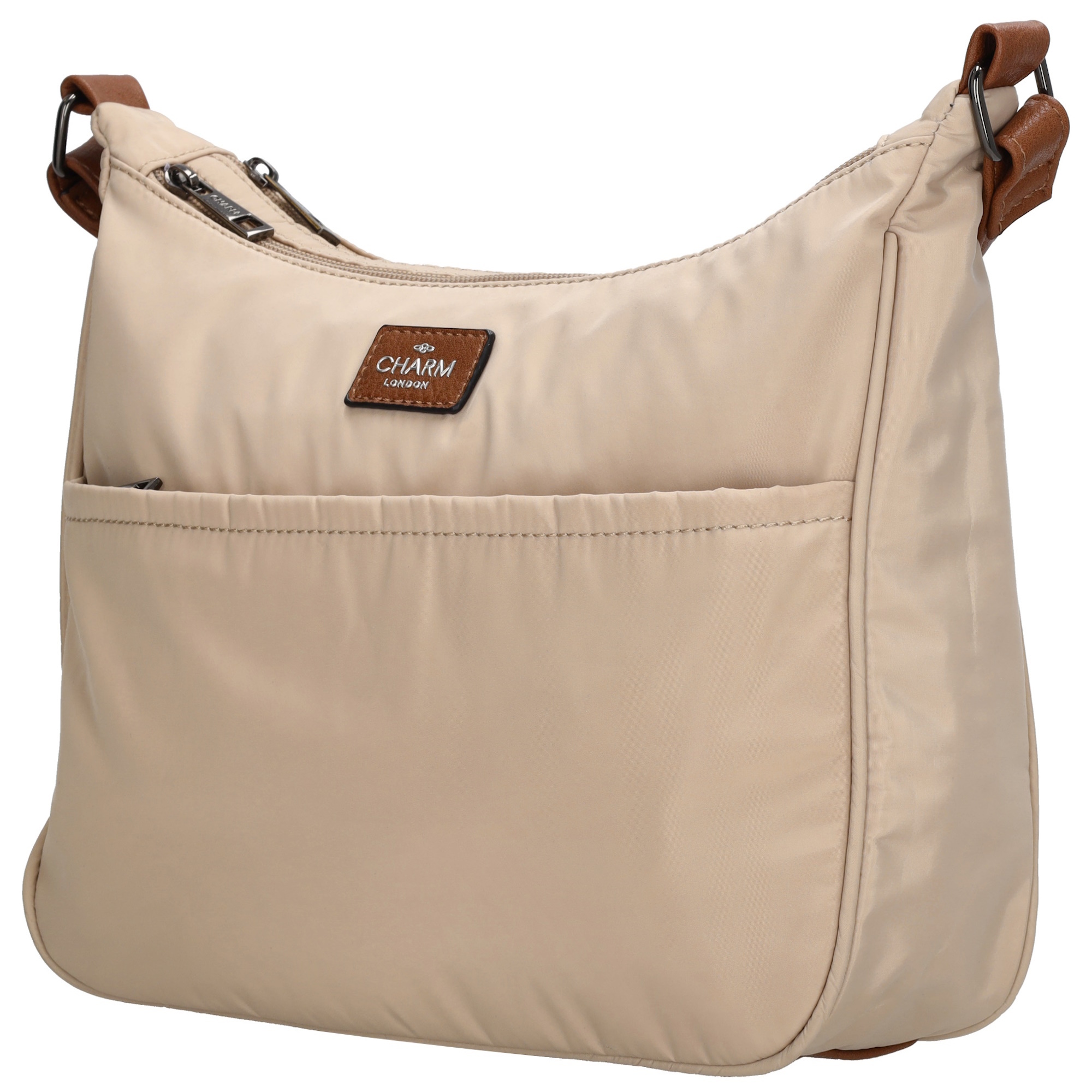 Stijlvolle en functionele schoudertas van Charm London. De tas heeft 2 hoofdvakken afgesloten met een rits. Voor- en achterop zit een handig ritsvak. In de tas zit een ritsvakje en 2 open vakken voor bv je smartphone.