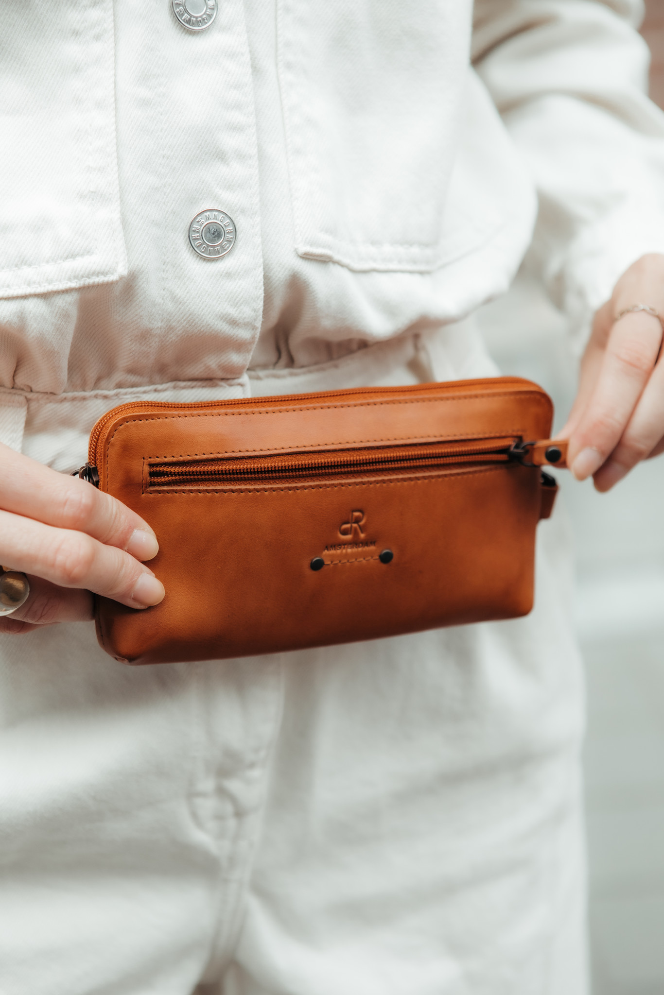 Altijd alles bij de hand, met de loop bag gemaakt van gewaxt rundleder raak je nooit meer iets kwijt. Dit handige heuptasje kun je met twee haken aan je broek bevestigen. Ideaal om mee te nemen op reis, bij festivals en concerten. Je kunt in het opbergvak welke met een rits af te sluiten is bijvoorbeeld makkelijk je telefoon en andere belangrijke spullen kwijt. En voor je briefgeld en muntjes is een extra kleiner ritsvskje aan de voorzijde te gebruiken.