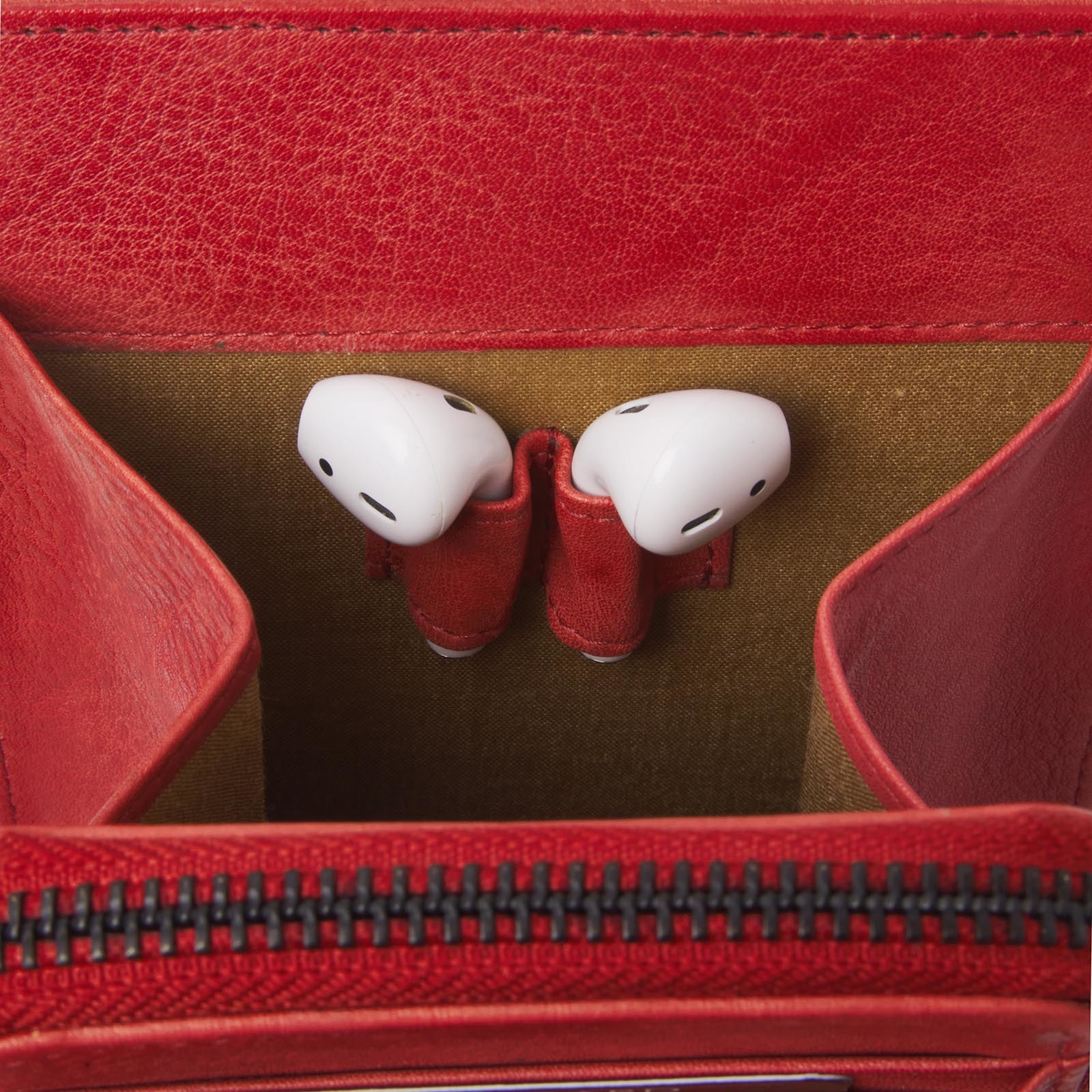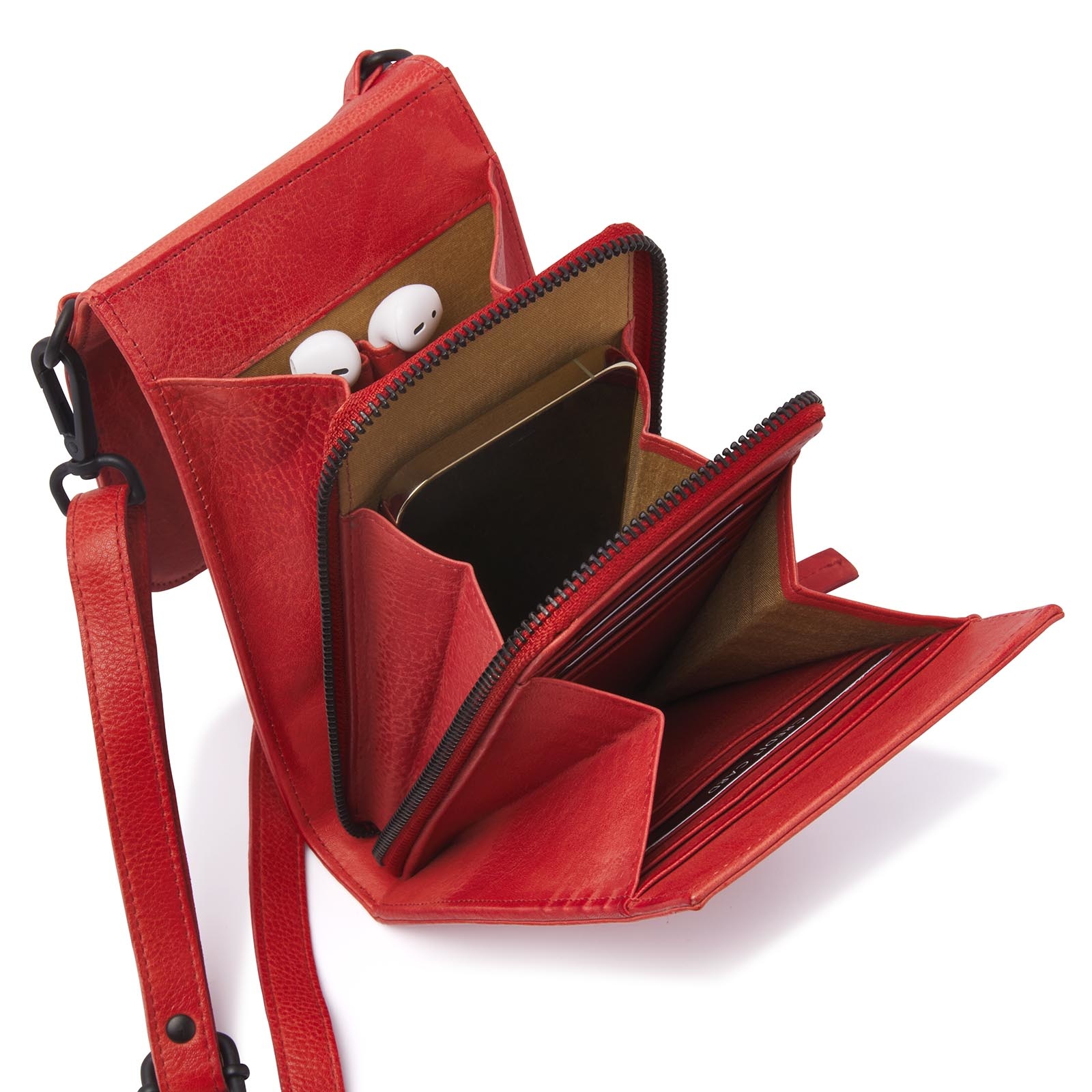 Een leuk tasje waar je alle kanten mee op kunt. De tas beschikt over een afneembare en verstelbare schouderriem en over een leuk handvat. Aan de achterzijde zit een mogelijkheid om het tasje mee aan je riem te nemen. De tas wordt afgesloten met een overslag met magneetsluiting, waaronder zich drie opbergvakken bevinden. Het middelste vakje heeft een rits welke van rechts naar links volledig open kan, een perfect vakje voor je telefoon. Het voorste opbergvakje heeft ruimte voor acht creditcards. In het achterste vak zit een speciale mogelijkheid voor het opbergen van je oordopjes.
