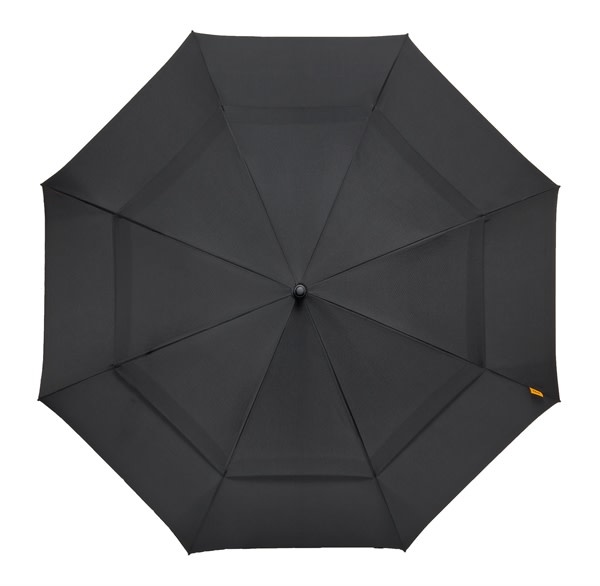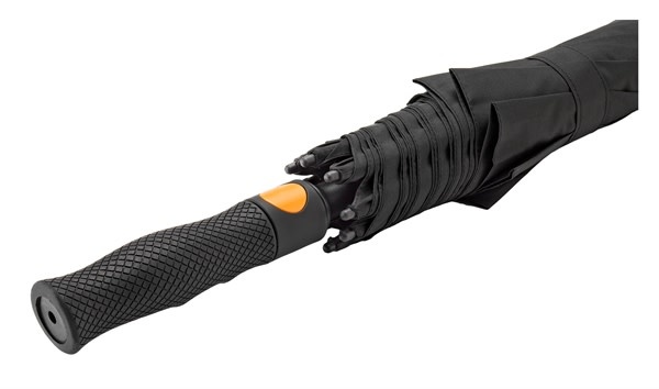 Falcone® hoge kwaliteit windproof golfparaplu, automatisch te openen. Gemaakt met een hoogwaardig oranje glasfiber frame. 210T polyester pongee doek met overlappende panelen om de wind door te laten zodat het doek niet zo maar opwaait. Comfortabel Zwart rubber finished handvat voor een goede grip, met een opening aan de onderkant om uw eigen doming toe te voegen. Met deze plu kun je gezellig wandelen samen onder één dak.