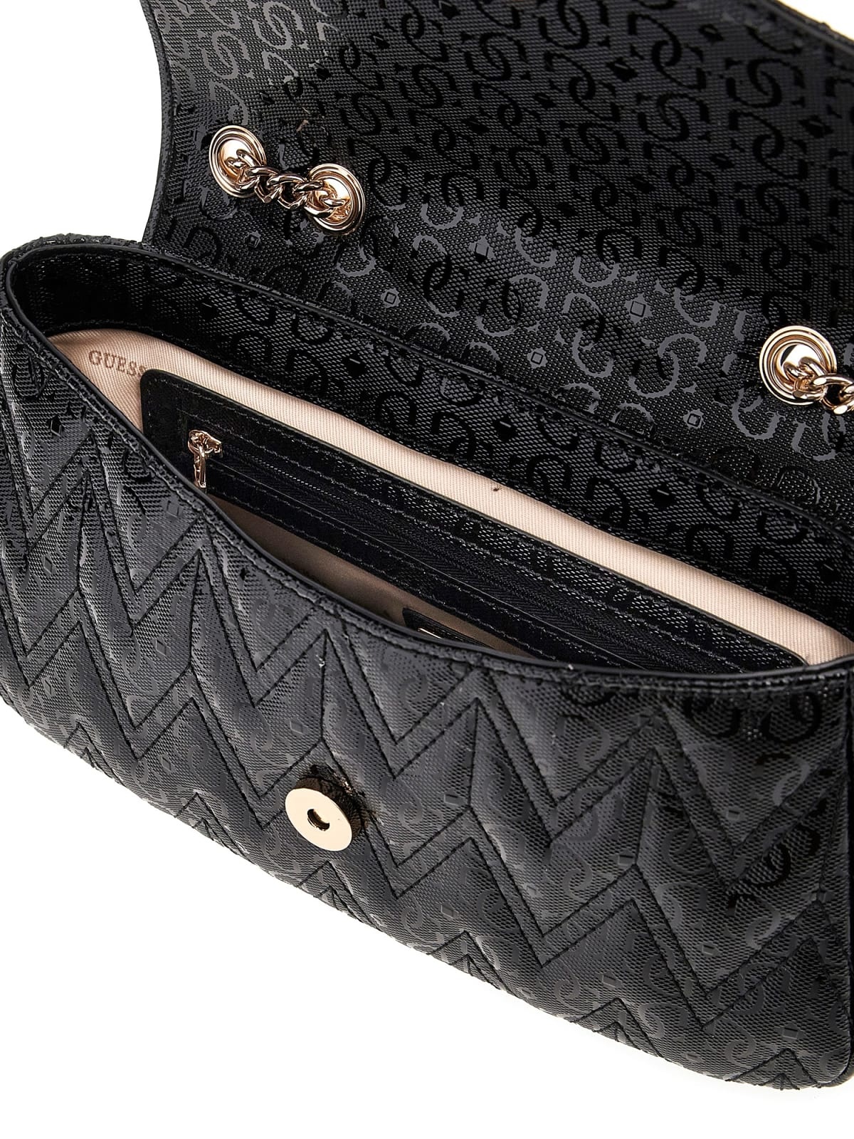 Deze luxe schoudertas draag je aan de verstelbare metalen schouderband. In de tas vind je een ritsvakje en 6 vakken voor pasjes. Op de achterkant van de tas zit nog een ritsvakje.