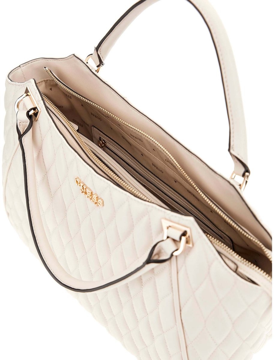 De Guess Valla Handtas combineert stijlvolle elegantie met praktische functionaliteit. Deze chique tas is gemaakt van hoogwaardig materiaal en beschikt over een uniek design dat zeker de aandacht trekt. Perfect voor dagelijks gebruik of speciale gelegenheden, biedt de Valla handtas voldoende ruimte voor uw essentials, terwijl de verfijnde afwerking een luxe uitstraling geeft. De tas is geschikt voor het dragen van belangrijke accessoires en heeft een comfortabele handgreep voor makkelijk gebruik. Met zijn tijdloze uitstraling en hoogwaardige afwerking is de Guess Valla Handtas een stijlvolle toevoeging aan elke outfit.