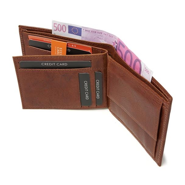Deze mooie van rundleder gemaakte billfold heeft een klassiek uiterlijk en tijdloos design. De billfold is erg functioneel in gebruik, het heeft plaats voor maar liefst tien betaalpassen en heeft twee vakken voor papiergeld. Muntgeld kan eenvoudig worden opgeborgen in het daarvoor bestemde vak met klep en drukknop. Daarnaast zijn er twee extra steekvakken, waarvoor een met kijkvenster. Deze billfold beschikt over RFID protectie. Dit beschermt tegen het skimmen van betaalpassen.