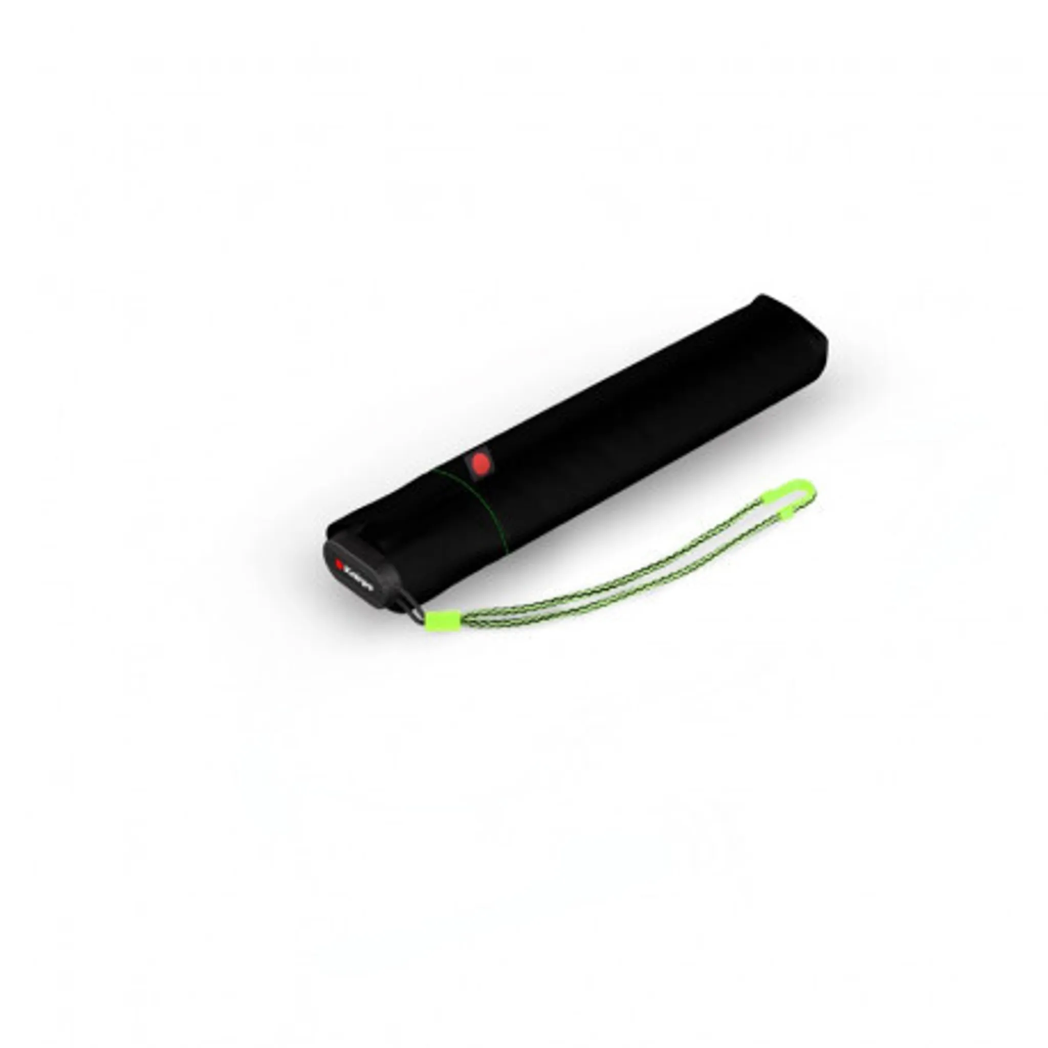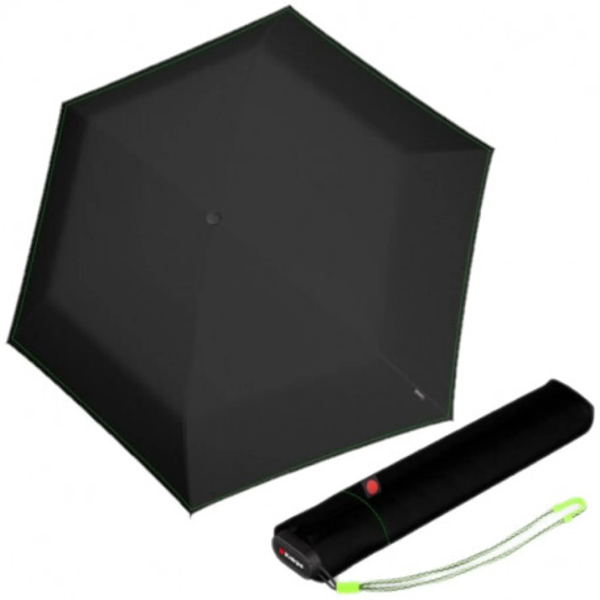 De US.050 Ultra Light Slim handmatige opvouwbare paraplu van het Duitse merk Knirps is dankzij het extreem platte formaat en de geselecteerde materialen de lichtste zakparaplu in het assortiment geworden. Hij weegt slechts 115 gram en is daardoor lichter dan een kleine appel en is door zijn slanke afmetingen de ideale reisgenoot en kan gemakkelijk in elke jaszak worden opgeborgen. Ondanks de compacte afmetingen zul je de bekende stabiliteit en kwaliteit van Knirps niet missen. Uitgerust met een diameter van 90 cm is hij ideaal voor één persoon. De US.050 zakparaplu kan ook worden gebruikt bij winderig weer en is bestand tegen windsnelheden tot 100 km/u zonder te beschadigen. Dit wordt gegarandeerd door de uiterst flexibele baleinen, waardoor de overkapping zelfs kan worden neergeklapt zonder dat deze kapot gaat. Het wordt geleverd met een beschermhoes.