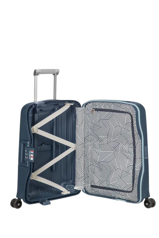 Samsonite S'Cure Spinner 55cm is vervaardigd uit Flowlite, een revolutionaire nieuwe polypropyleenmix. Deze hardschalige koffer beschikt over een TSA-slot voor zorgeloos reizen van en naar de VS. De koffer heeft een trekstang die op verschillende hoogtes geblokkeerd kan worden en een aluminium stuurstang voor extra lichtheid. In de koffer vindt u 2 grote compartimenten, het onderste compartiment heeft verlaagde gekruiste inpakriemen en het bovenste gedeelte een tussenschot met rits, hiermee kun je de koffer gemakkelijk en georganiseerd inpakken.
