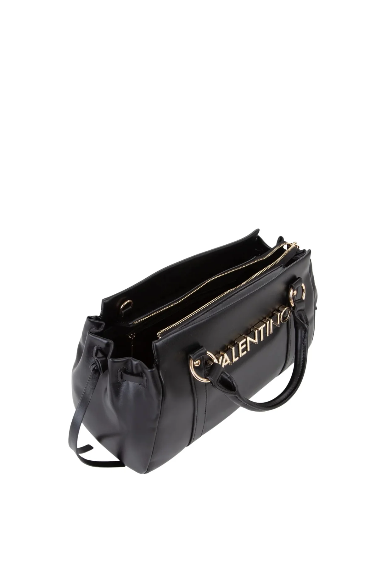 Stijlvolle handtas van Mario Valentino gemaakt van zachte PU materialen. De tas is afgesloten met een rits. In de tas zit een open vak en een ritsvakje. Je draagt de tas aan de handvatten of aan de meegeleverde schouderband.
